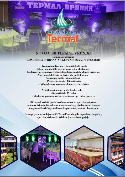 Специјална болница за рехабилитацију „Термал” Врдник са поносом представља у потпуности обновљену конгресну дворану и пратеће мултифункционалне просторе, осмишљене тако да задовоље највише стандарде пословних, свечаних и спортских догађаја.
