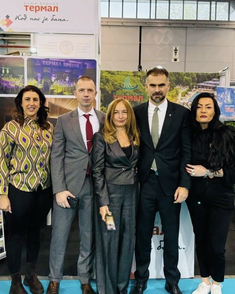 Uroš Kandić, državni sekretar u Ministarstvu turizma i omladine, Milan Jarić, pomoćnik za turizam i regionalno privrednu saradnju u Pokrajinskom sekretarijatu za privredu i turizam, u društvu direktora SB ”TERMAL”, Dragana Kosovca, predsednika opštine Irig Tihomira Stojakovića i dr Nataše Pavlović, direktorke Turističke organizacije Vojvodine, na otvaranju ”Kongresa ruralnog turizma Vojvodine” čiji je domaćin po prvi put u svojoj istoriji bila naša ustanova.